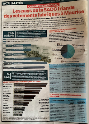 Have a look at the the attachment below titled 'Commerce Régional” published in today’s Le Défi. It shows our exports potential to SADC countries in some products as worked out by the International Trade Centre.